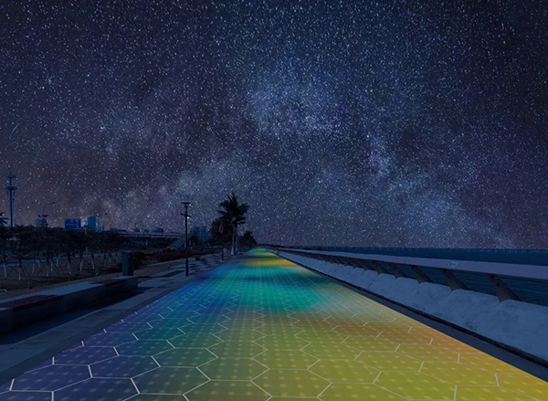 属于建筑光伏,不仅可以发电还可以直接代替建筑地板砖、隔热砖、外墙砖,与建筑形成光伏建筑一体化。白天发电为建筑内部提供电能,晚上还可以发出五颜六色的景观亮化光线。